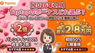 Taptap完全ガイド 【2026年2月】Taptapのボーナスどれ選ぶ?バレンタイン100% vs 初回50%を徹底比較!