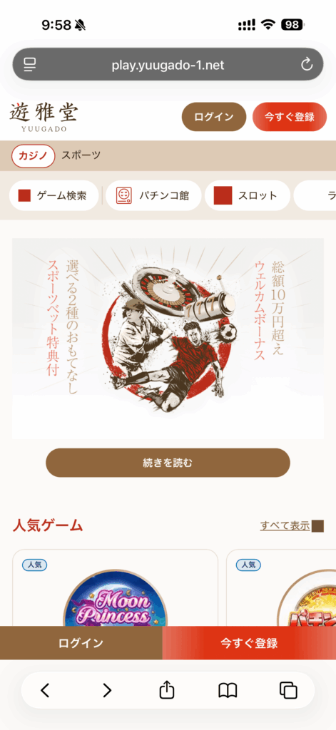 • 日本円(JPY)表記: 多くのカジノがドル表記($100など)であるのに対し、遊雅堂は「10,000円」と表示されます。為替レートを気にする必要がなく、金銭感覚が狂いにくいのが最大のメリットです。
