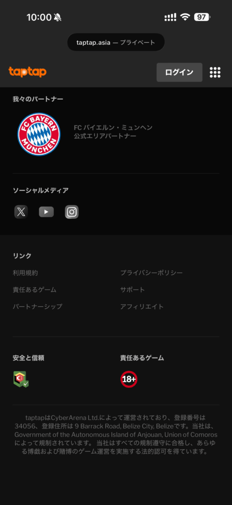 最も重要なのは安全性です。 サイトの下部(フッター)を見て、キュラソー(Curacao)、マルタ(Malta)、マン島(Isle of Man)などの政府発行ライセンスロゴがあるか必ず確認しましょう。 ※今回紹介したTOP10サイト(およびTaptap)は全て正規ライセンス取得済みですので安心してください。