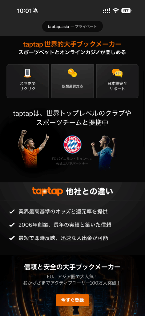 「みんなと同じサイト」で満足できない方、「本当に勝てる環境」を探している方は、まずはTaptapをチェックしてみてください。