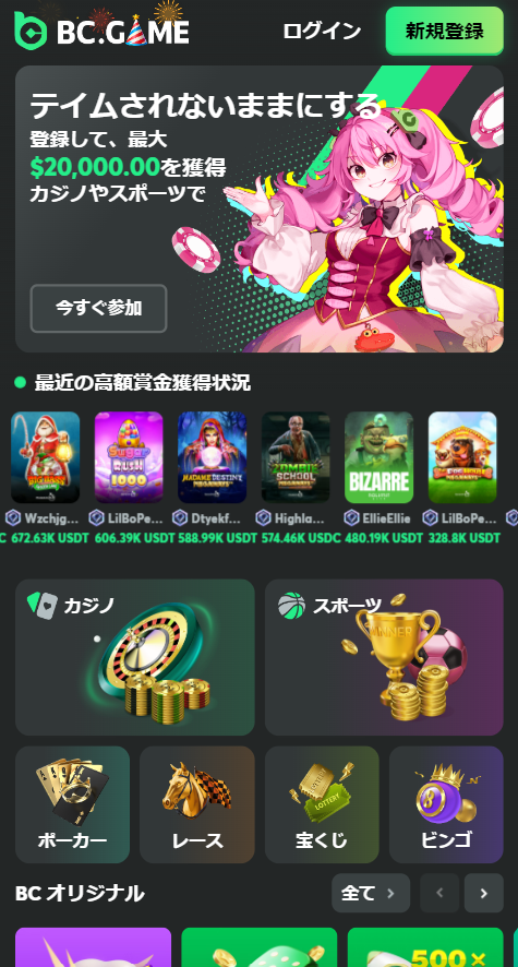 チャット機能でプレイヤー同士がチップを送り合えるなど、SNSのような機能を持つ最新サイトです。